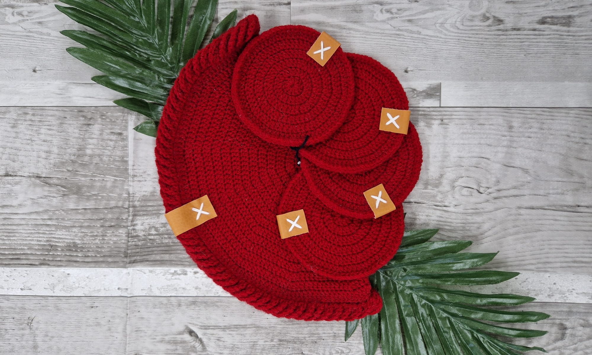 Crochet Coaster and Table Centerpiece Set – Red