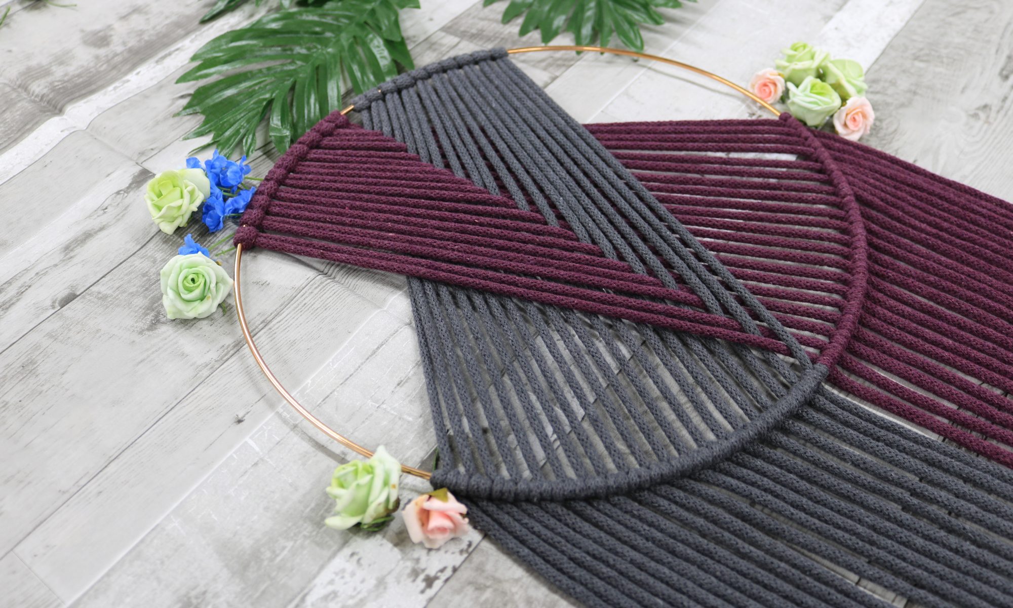Macrame Hoop Wall Hanging – Dark Grey and Burgundy