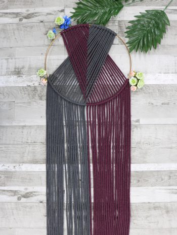 Be the first to review “Macrame Hoop Wall Hanging – Dark Grey and Burgundy”